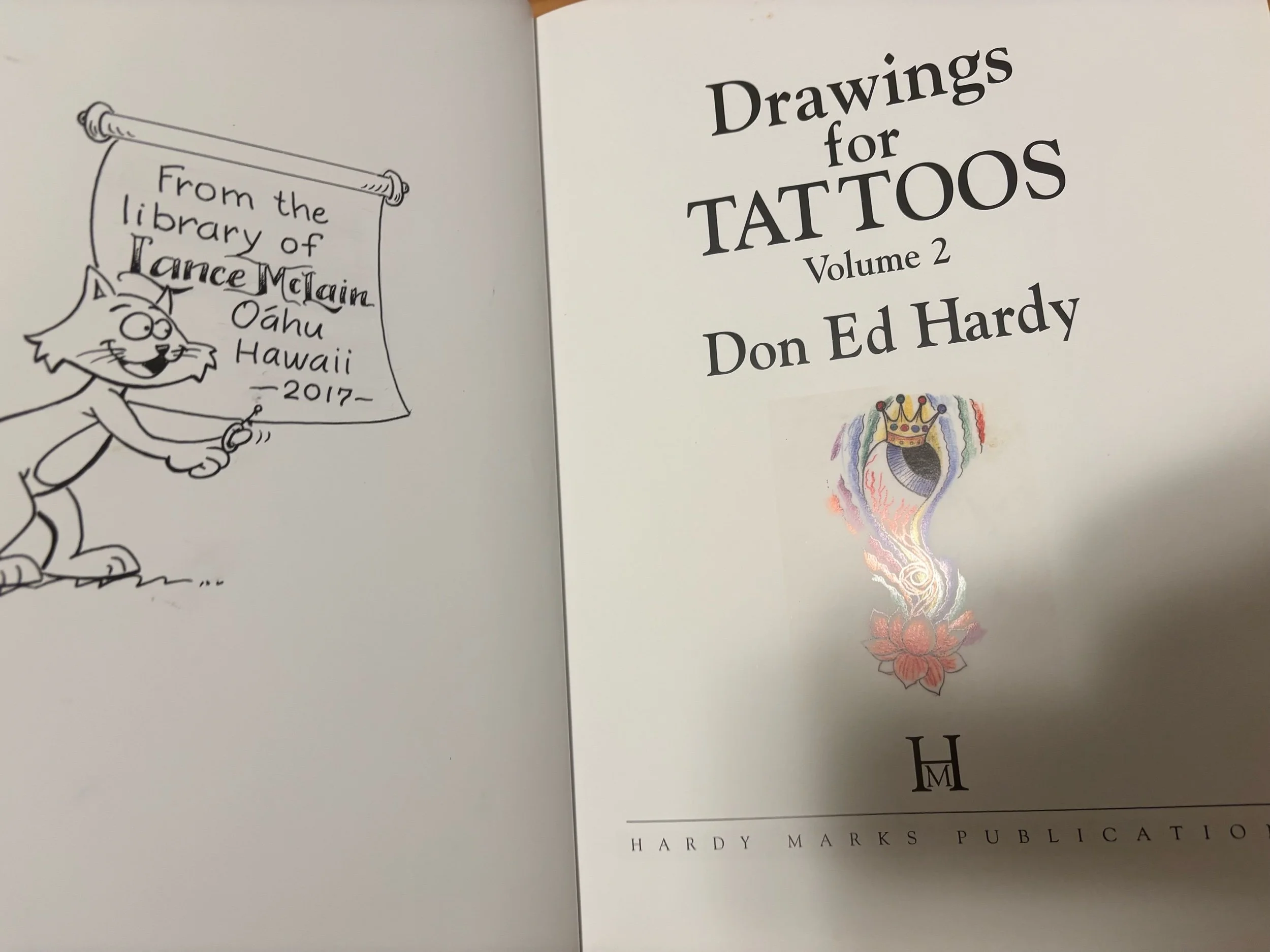 Shop › Hardy Marks Drawing for Tattoos Vol 2 Ed Hardy, Image 1 of 5 Image 2 of 5 Image 3 of 5 Image 4 of 5 Image 5 of 5 Hardy Marks Drawing for Tattoos Vol 2 Ed Hardy, $300.00 Signed copy by Lance McLain! See picture of original drawing too. Hardy Marks hardcover, 2017. First edition hard to find Add To Cart Added! Signed copy by Lance McLain! See picture of original drawing too. Hardy Marks hardcover, 2017. First edition hard to find Reviews Reviewer Name Review Date Star Rating Description Posted on Etsy Product Show More You Might Also Like Quick View Thom DeVita Original Art: Tattoo Charlie Wagner, Gotham, NYC Collage $800.00